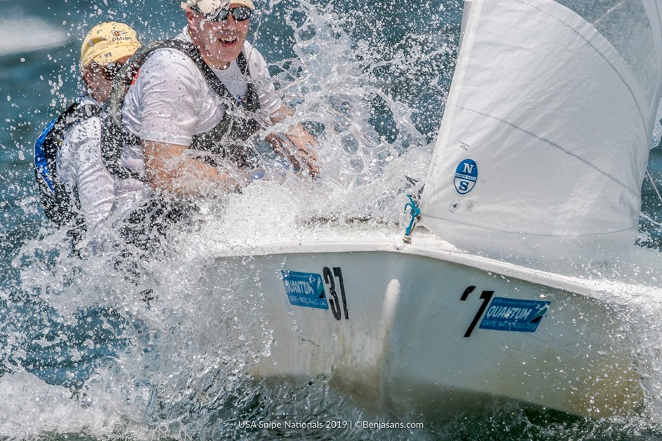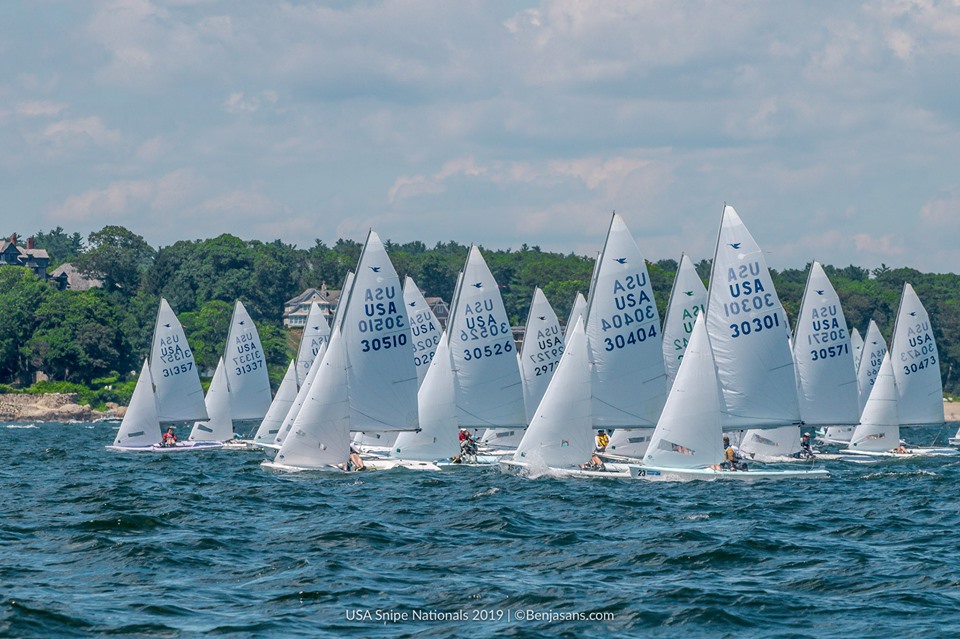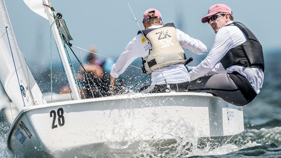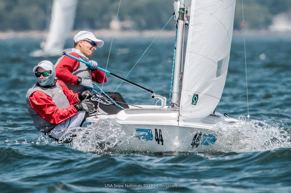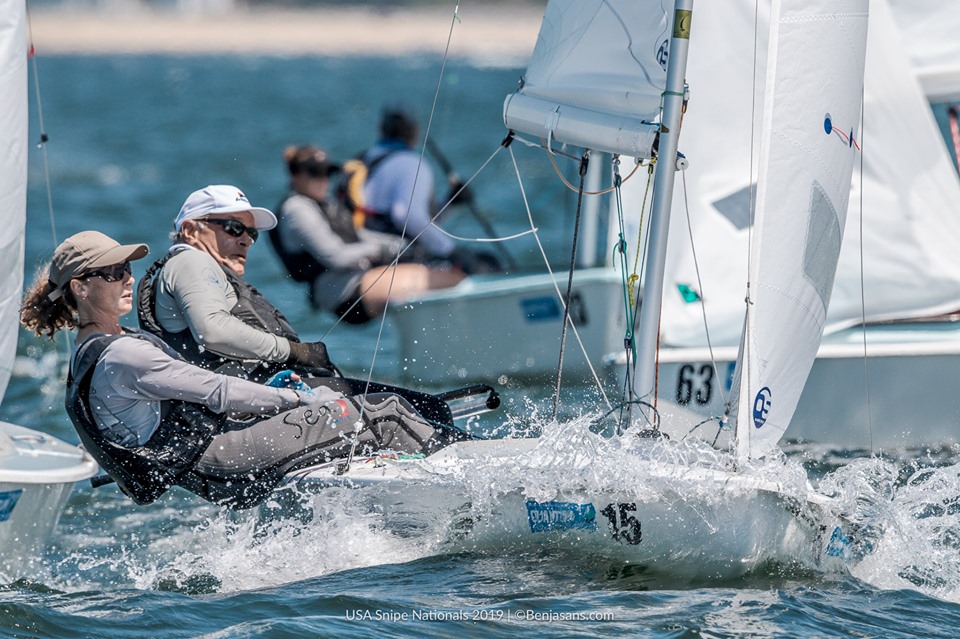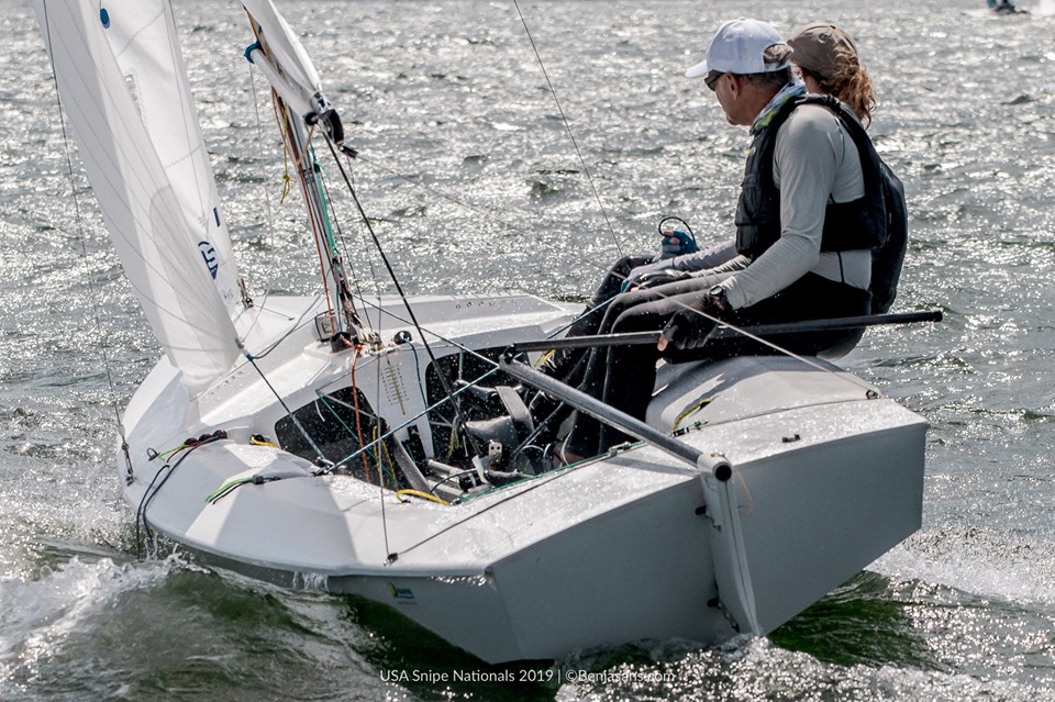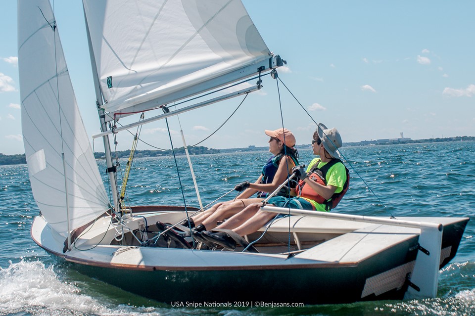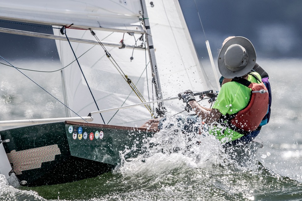 Though the weather was challenging with record heat and humidity levels, that didn’t stop the Serious Fun—though it did impact the Serious Sailing on two of the race days. The first day was surprisingly chilly, with what turned out to be a dying northeast breeze, and three races worked up appetites for “burgahs” and “beeahs” ashore afterward (along with the chance to catch up with old friends and make a few new ones). With a wide mix of returning Snipe sailors, newbies, and the veterans who never left, there was plenty of catching up to do.