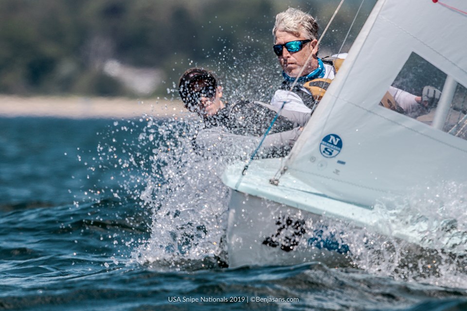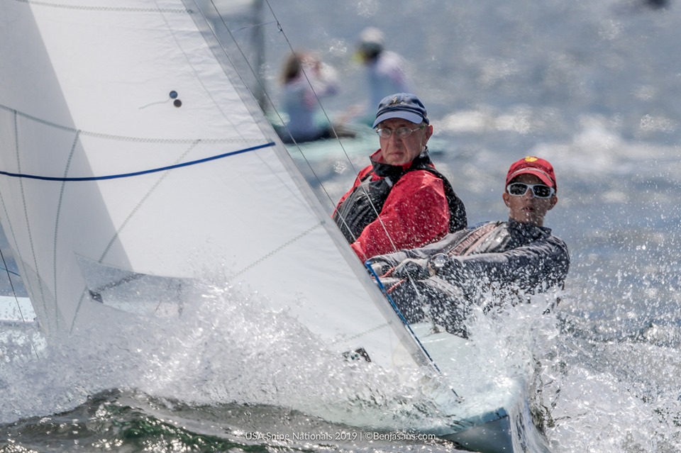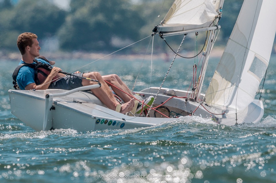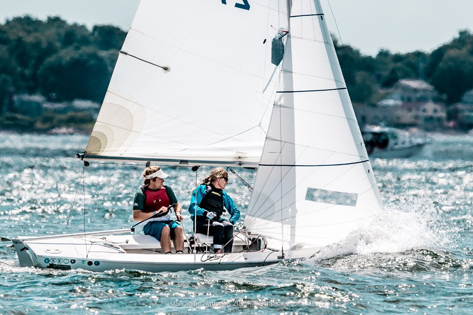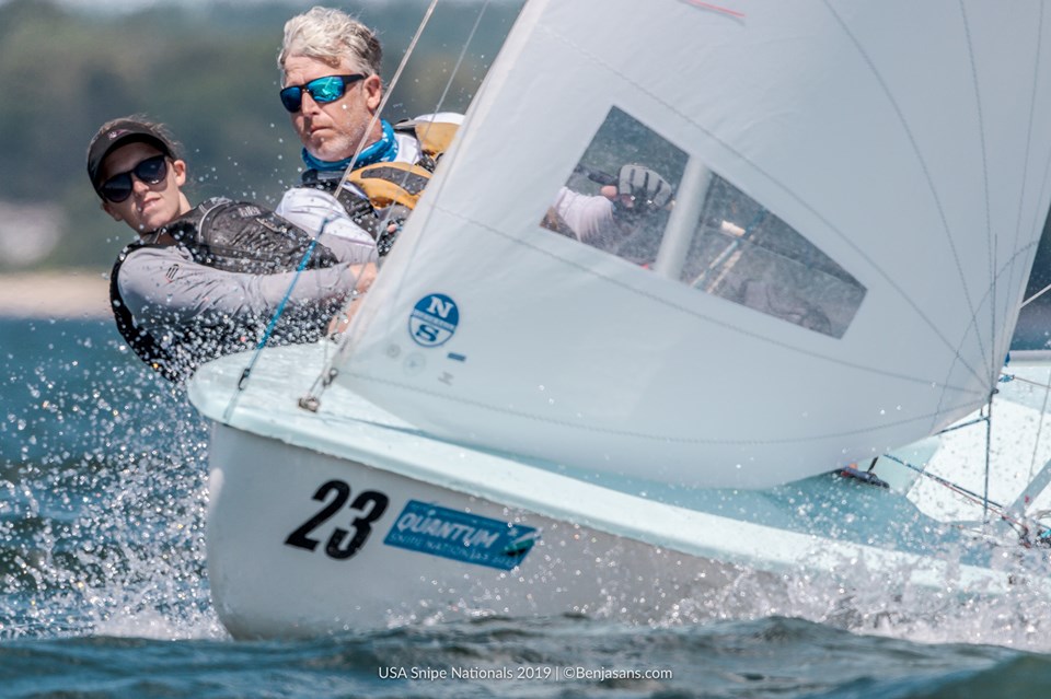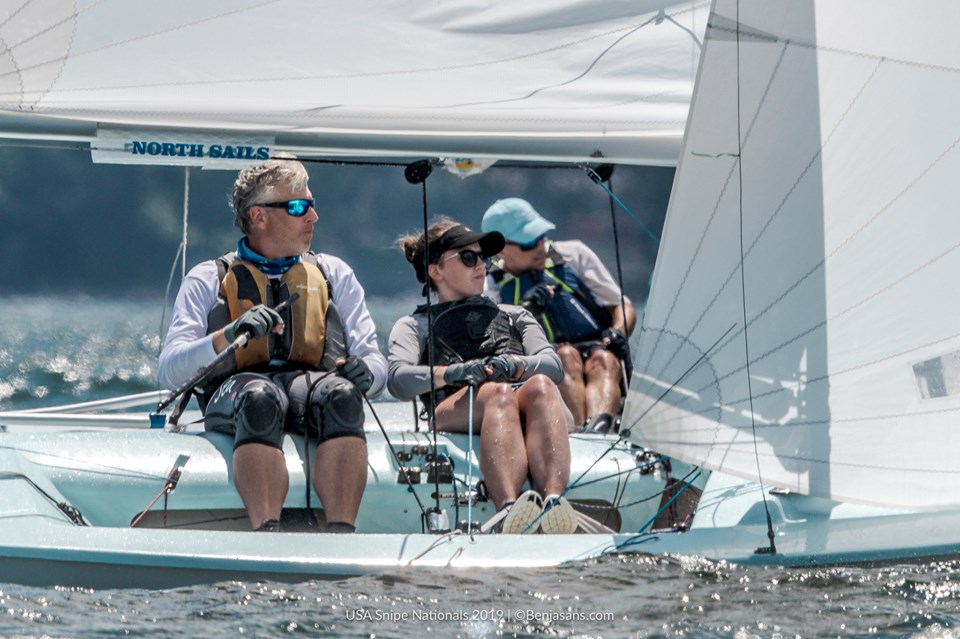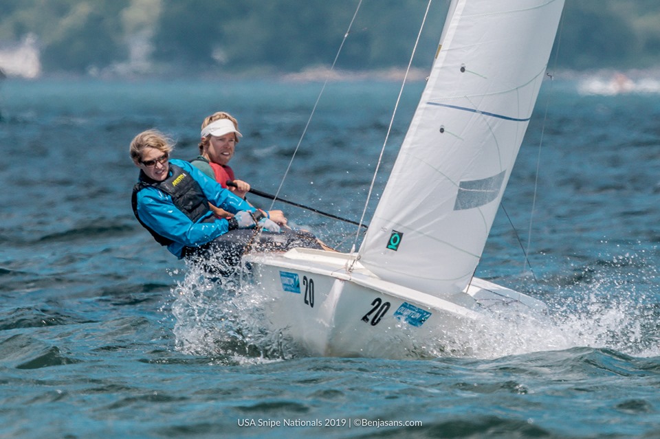 Though the weather was challenging with record heat and humidity levels, that didn’t stop the Serious Fun—though it did impact the Serious Sailing on two of the race days. The first day was surprisingly chilly, with what turned out to be a dying northeast breeze, and three races worked up appetites for “burgahs” and “beeahs” ashore afterward (along with the chance to catch up with old friends and make a few new ones). With a wide mix of returning Snipe sailors, newbies, and the veterans who never left, there was plenty of catching up to do.