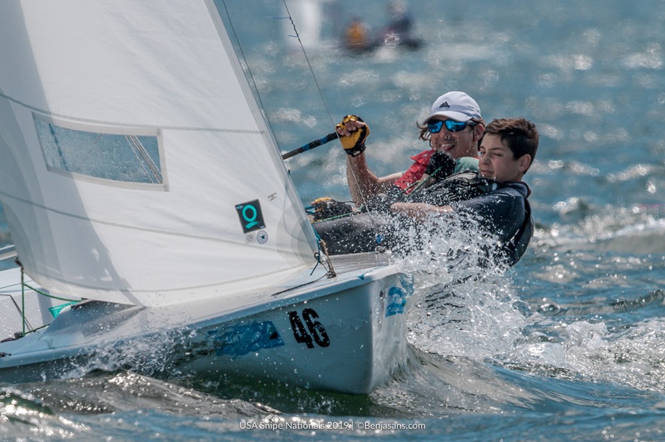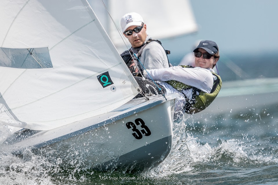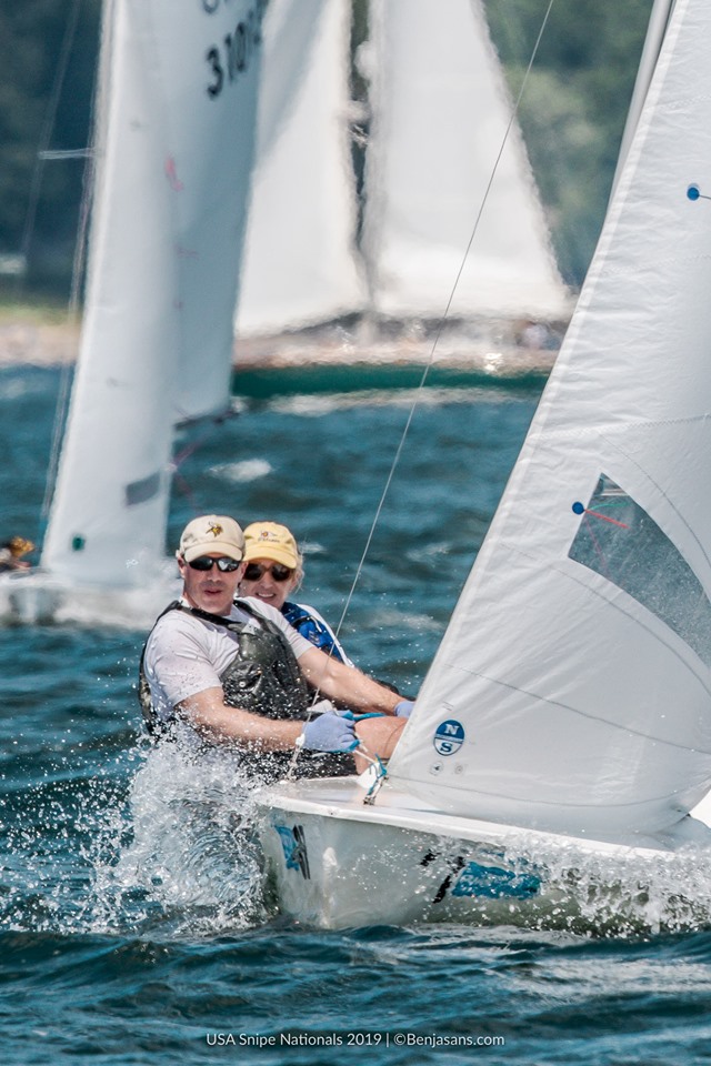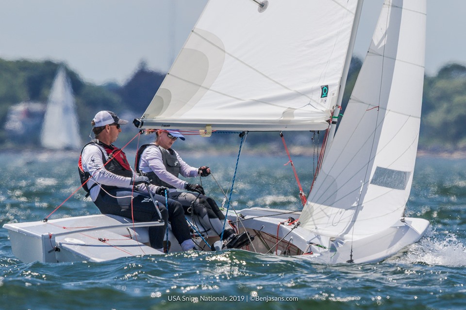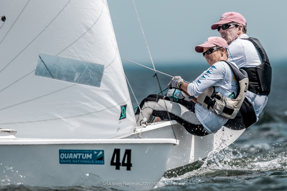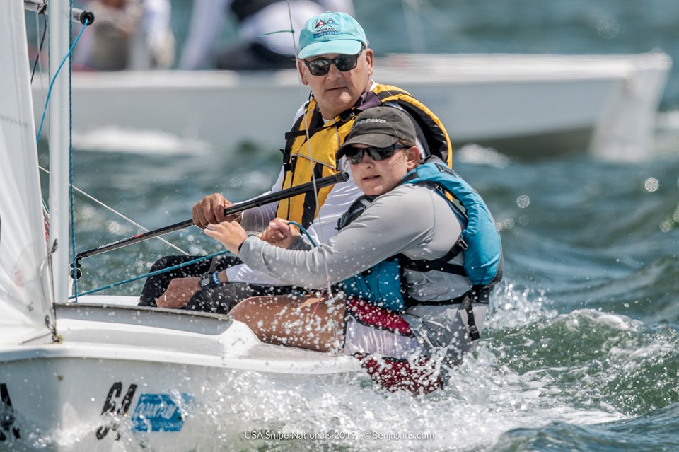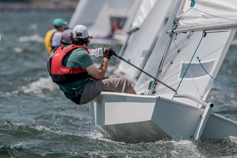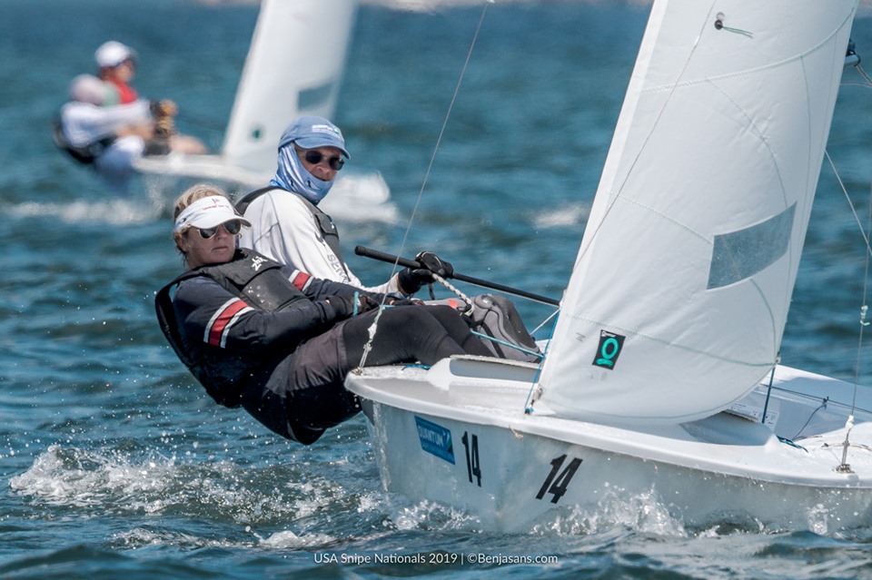 Though the weather was challenging with record heat and humidity levels, that didn’t stop the Serious Fun—though it did impact the Serious Sailing on two of the race days. The first day was surprisingly chilly, with what turned out to be a dying northeast breeze, and three races worked up appetites for “burgahs” and “beeahs” ashore afterward (along with the chance to catch up with old friends and make a few new ones). With a wide mix of returning Snipe sailors, newbies, and the veterans who never left, there was plenty of catching up to do.