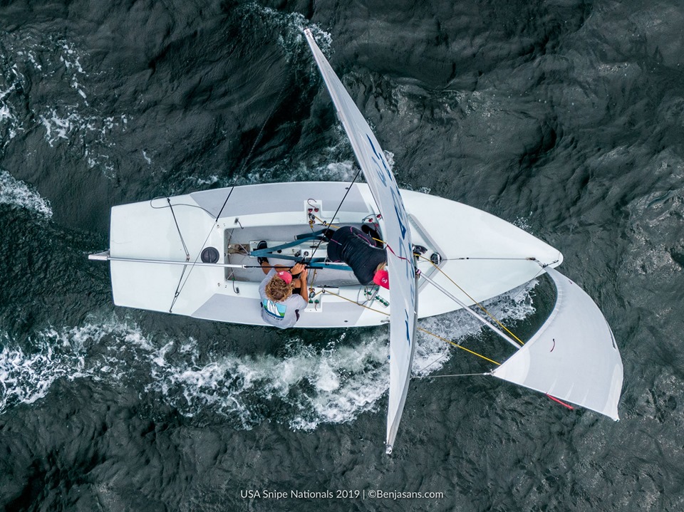 A building gradient westerly on the final day gave teams a chance to stretch their hiking legs and remember their tighter tuning numbers, as well as enjoying a few fun downwind rides. Local sailor (and light air specialist) Tomas Hornos, 2009 Snipe World Champion, proved that he and Kathleen Tocke could hang in the breeze as well, winning a tie break for first overall (over another Snipe world champion, Augie Diaz, and crew Margeaux Barco). Third overall went to 2019 Pan Am Games representatives Ernesto Rodriguez/Hallie Schiffman, who used the event as a final training opportunity before leaving for Peru.