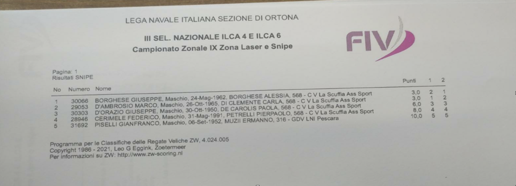 Ortona, Italy, June 6, 2021. Final results after 2 races: