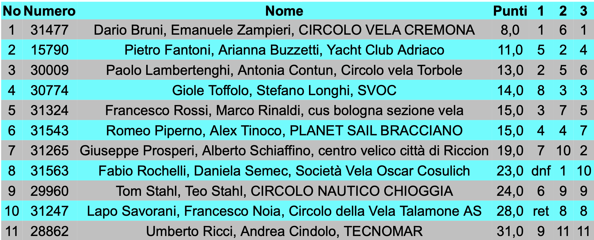 First Leg Summer Circuit (the Second Leg will be sailed in Chioggia on June 19-20, 2021) – Final results after 3 races: