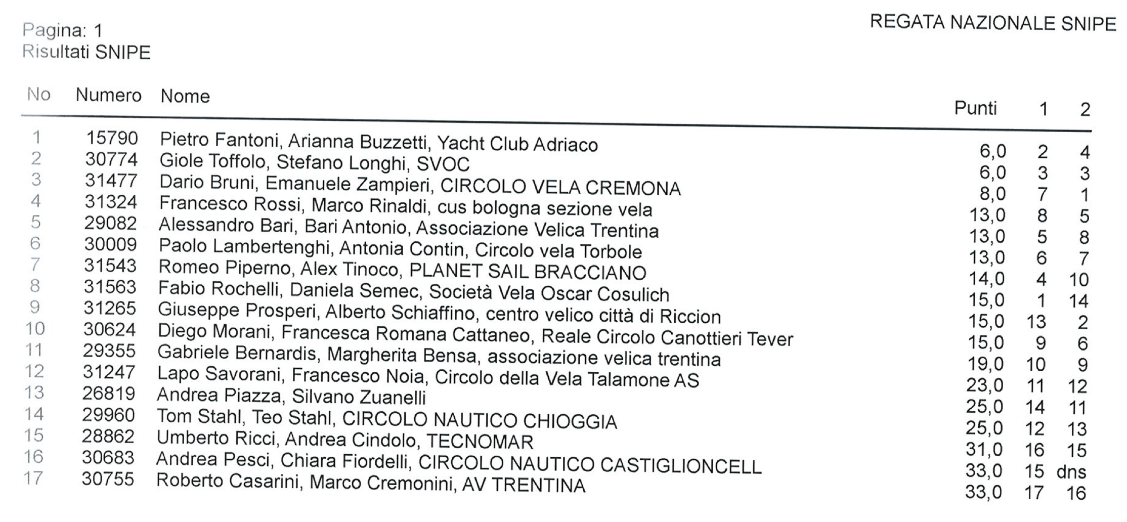 Regata Nazionale – Final results after 2 races: