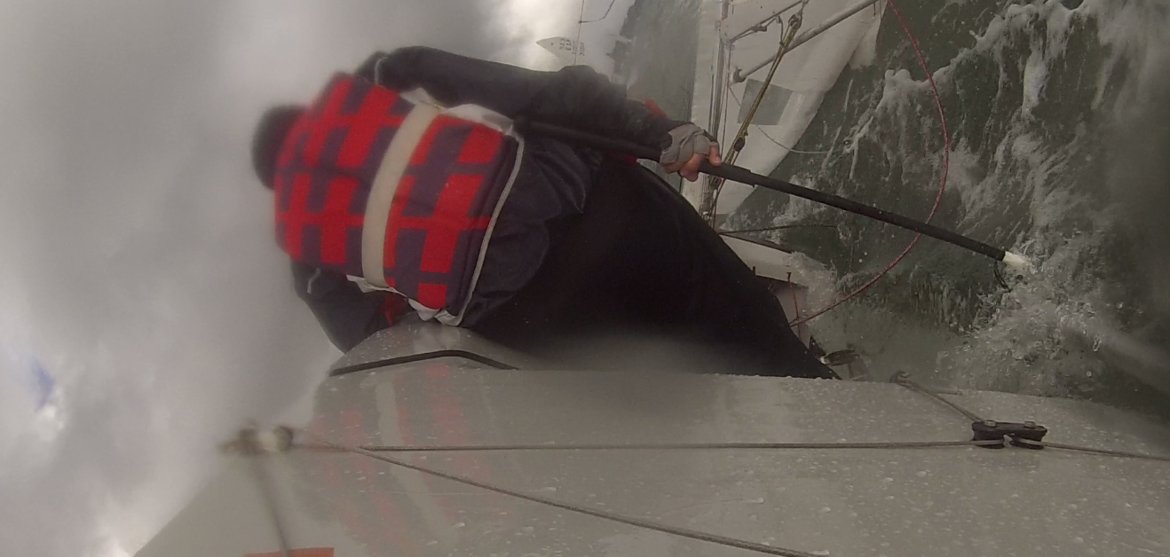 En el primer largo el viento roló al Norte, poniéndose de aleta, con lo que todos los participantes largaron el tangón, comenzando a entrar rachas que superaban los 24 nudos.