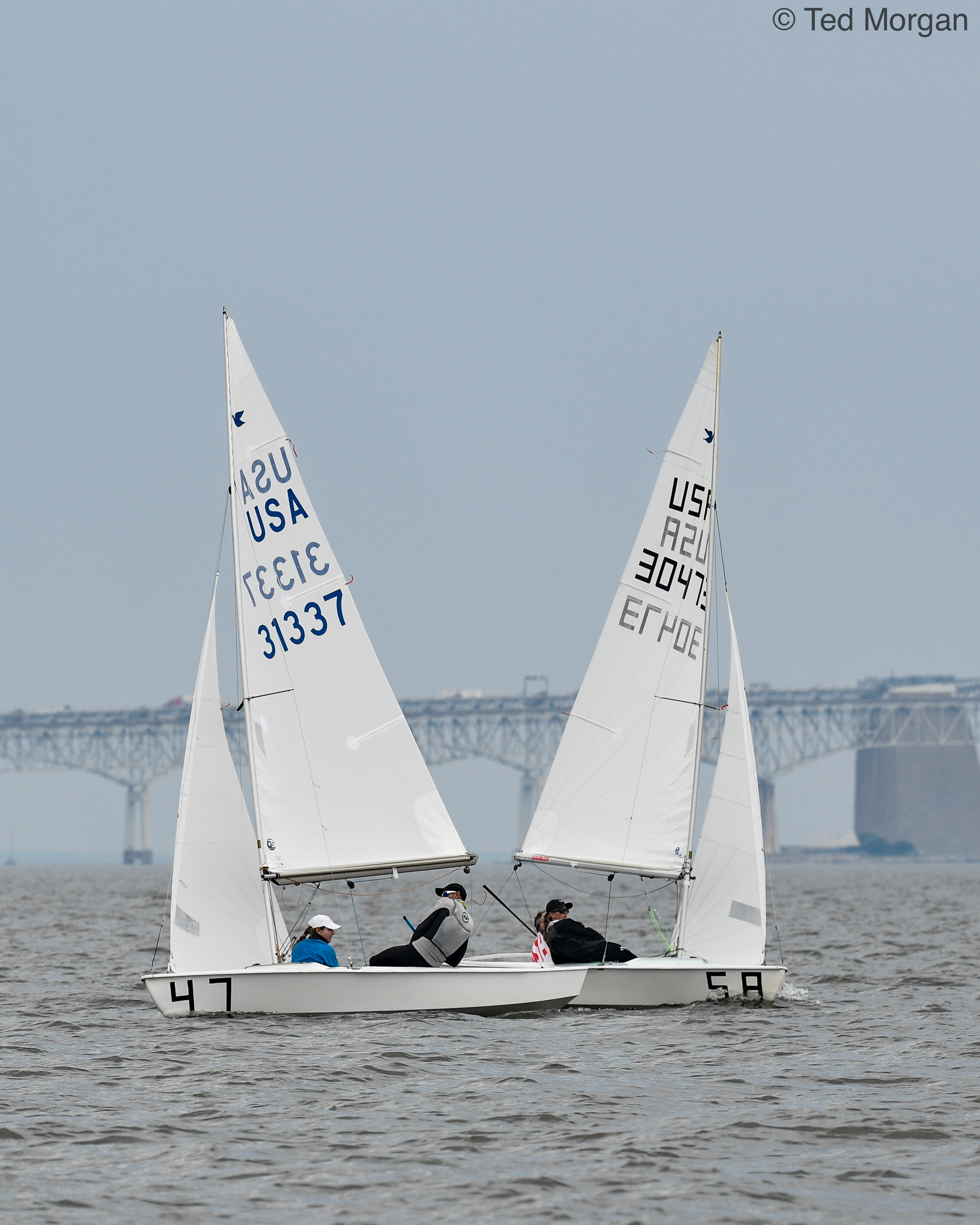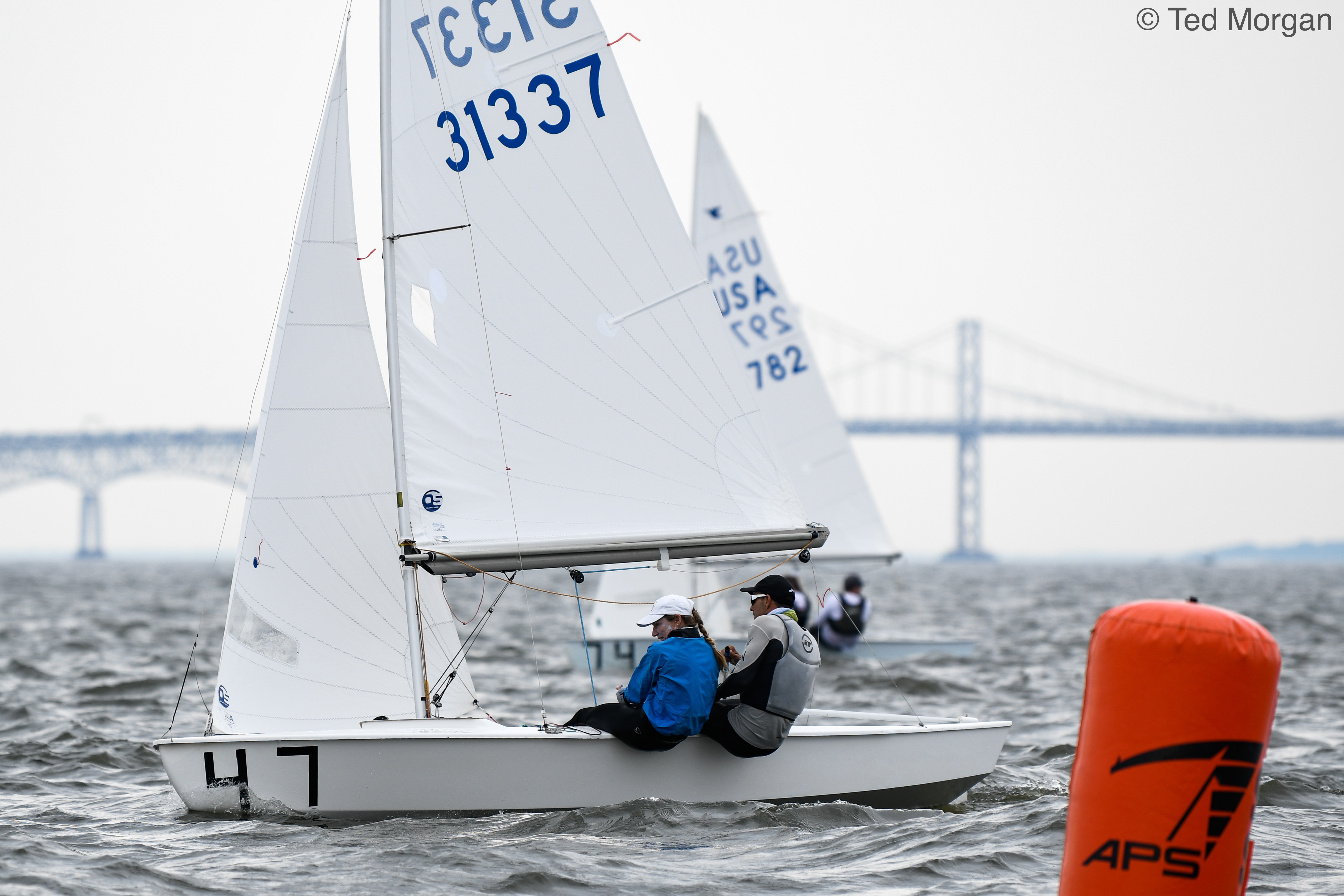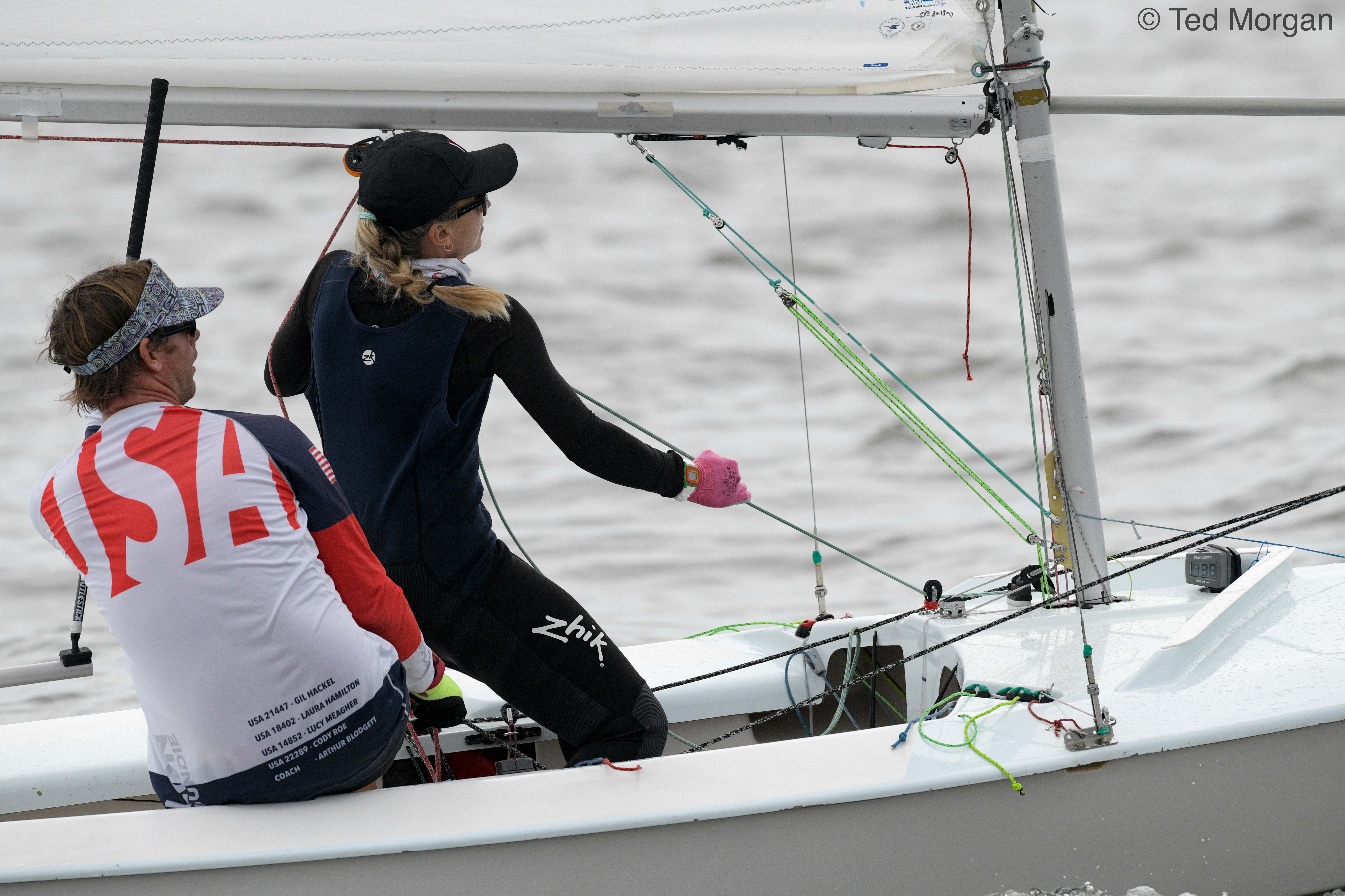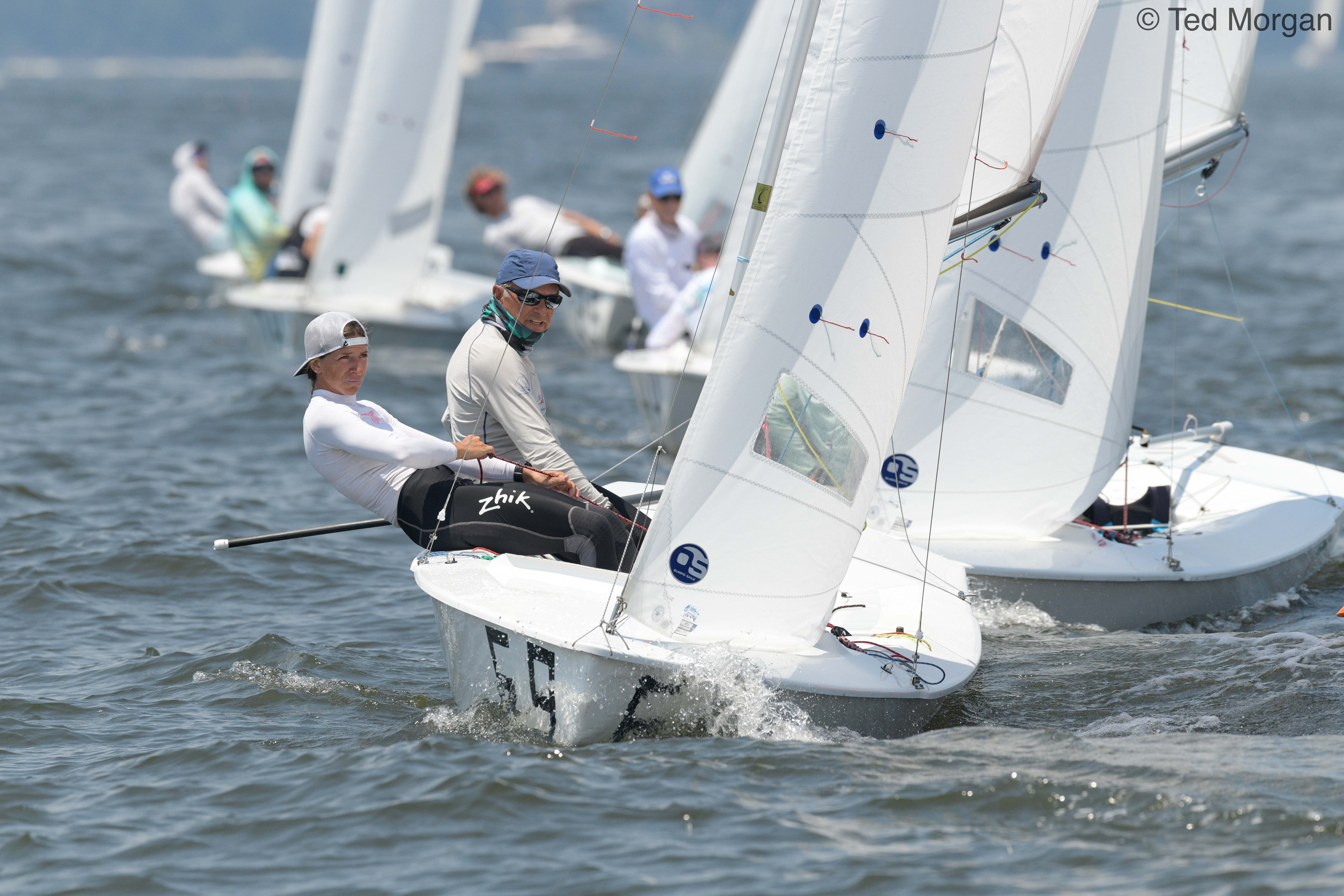 Ernesto Rodriguez and Kathleen Tocke won a tight battle to claim the 2021 U.S. Snipe National Championship, with a net of 31 points over 9 races. The team of Raul Rios and Andrea Reifkohl Gonzalez finished in second–just one point back–at 32 points.