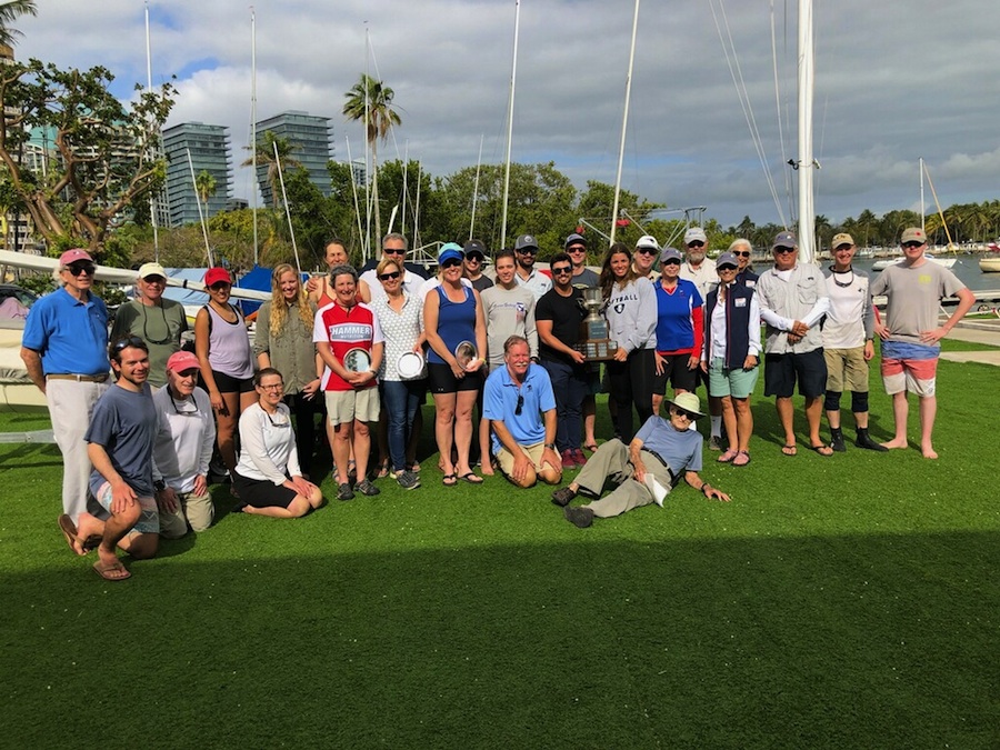 Miami, February 4, 2018. Report by Carol Cronin “The Comodoro Rasco just has its own special vibe.” That’s how Peter Commette describes it, and I agree. I don’t know of any other regatta that combines so well the Serious Sailing, Serious Fun motto. The regatta is an “Old Man” regatta, initiated by Snipe legend Gonzalo “Old Man” Diaz Sr to honor Commodore Manuel Rasco of the Miramar Yacht Club in Havana. Old Man doesn’t believe in throwouts, so it’s a 5 race series over two days. That means no pushing the line or taking chances on the water, and it leaves plenty of time for socializing after sailing.