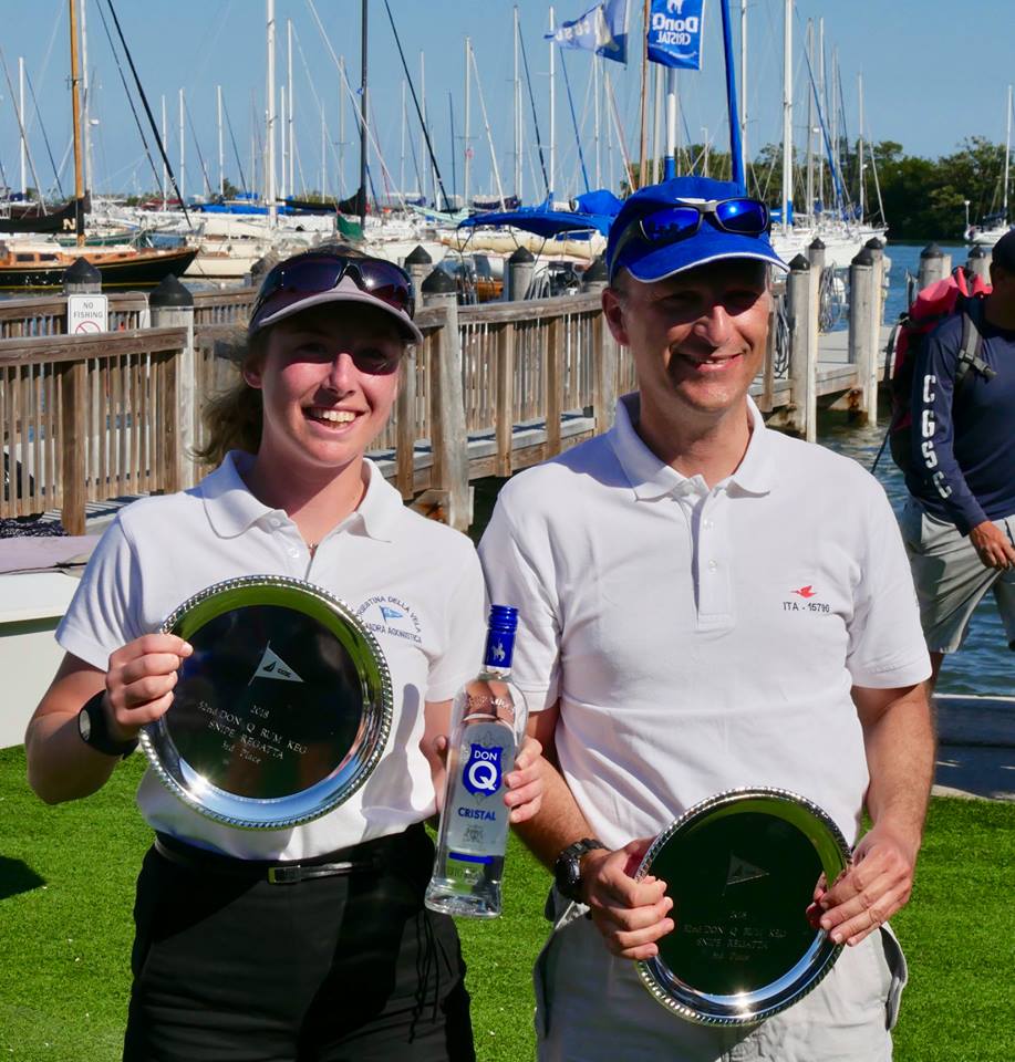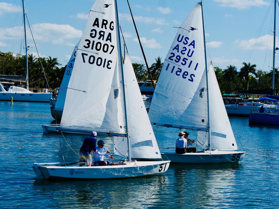 Miami, March 25, 2018. Results after 8 races (1 discard) Report by Carol Cronin The 52nd DonQ Rum Keg Regatta delivered its dependable mix of Serious Sailing, Serious Fun over three days and eight races on Biscayne Bay. With seven countries and 31 boats, it remains one of the premier Snipe events. Friday's forecast was for 15-18 knots of NE breeze, but it never built to anything over 14 knots and the shifts provided plenty of opportunity for gains and losses on the four leg windward leewards. Ernesto Rodriguez/Kathleen Tocke won all three races, so the battle was for second overall with the points tight behind them. (This theme would continue for the next two days.)
