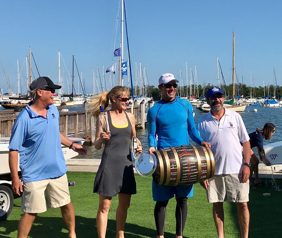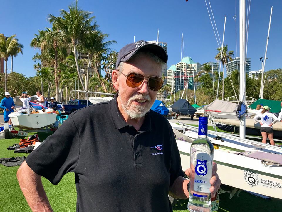 The 52nd DonQ Rum Keg Regatta delivered its dependable mix of Serious Sailing, Serious Fun over three days and eight races on Biscayne Bay. With seven countries and 31 boats, it remains one of the premier Snipe events. Friday’s forecast was for 15-18 knots of NE breeze, but it never built to anything over 14 knots and the shifts provided plenty of opportunity for gains and losses on the four leg windward leewards. Ernesto Rodriguez/Kathleen Tocke won all three races, so the battle was for second overall with the points tight behind them. (This theme would continue for the next two days.)