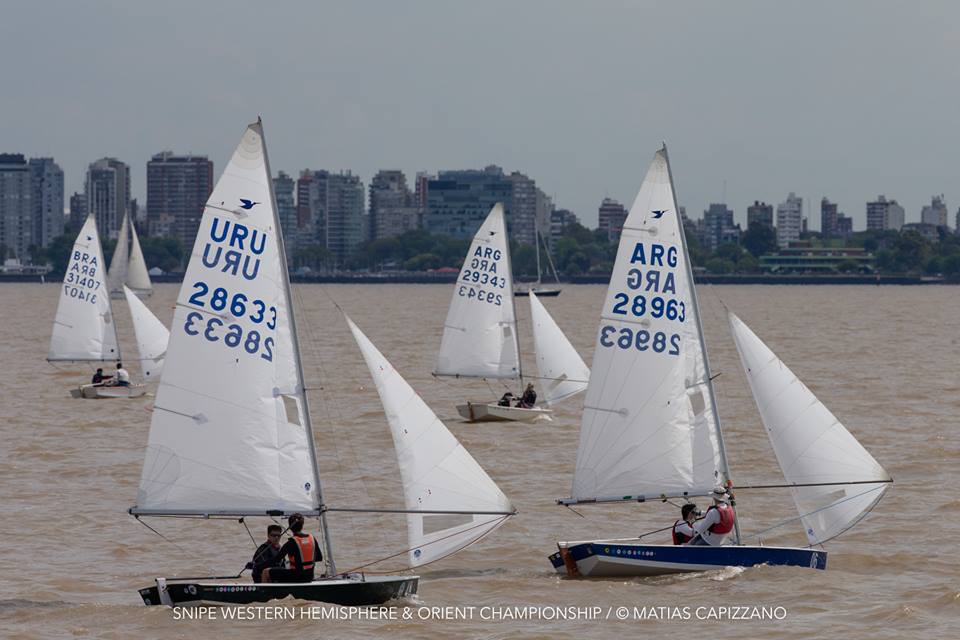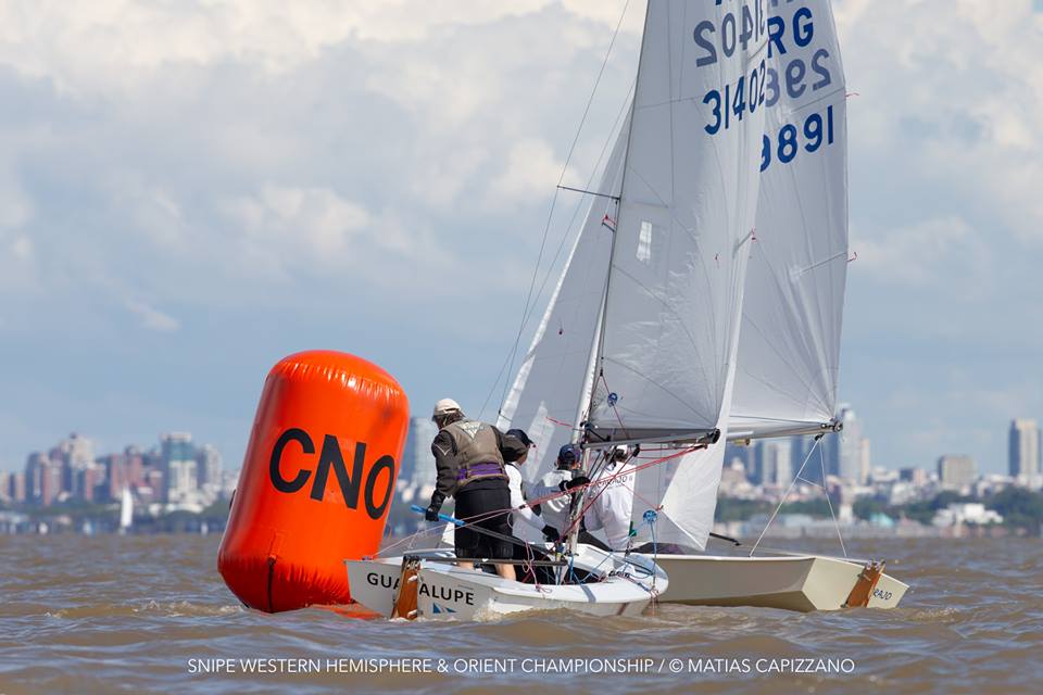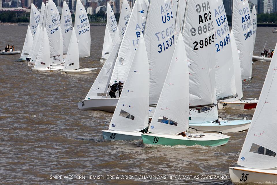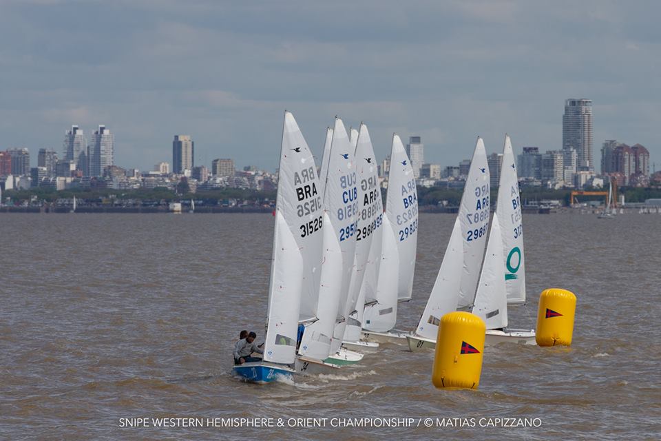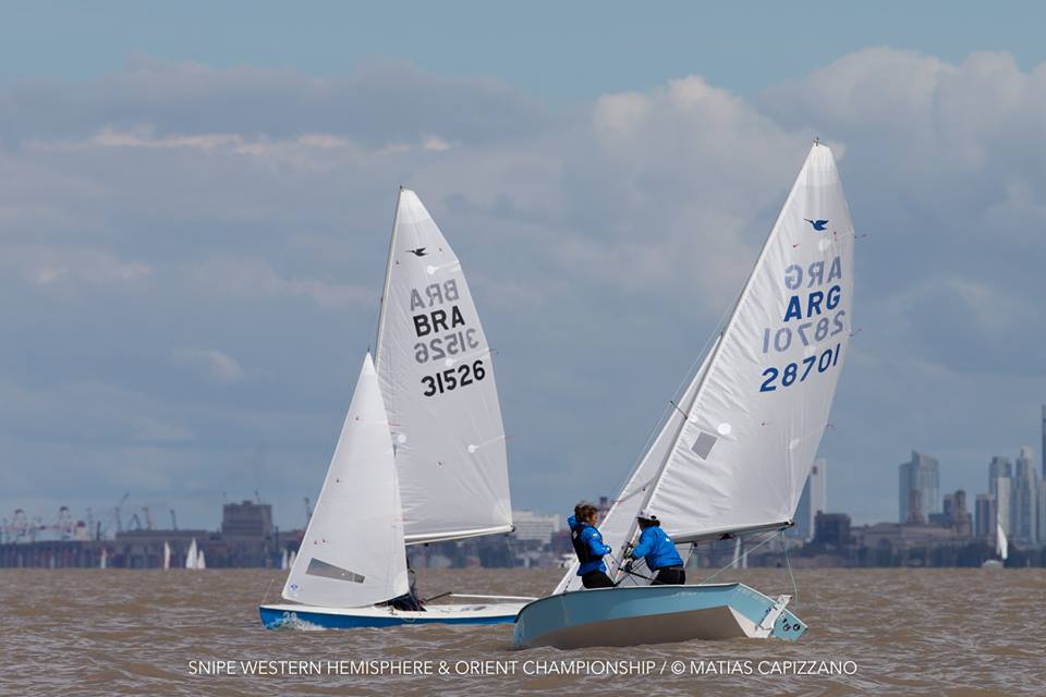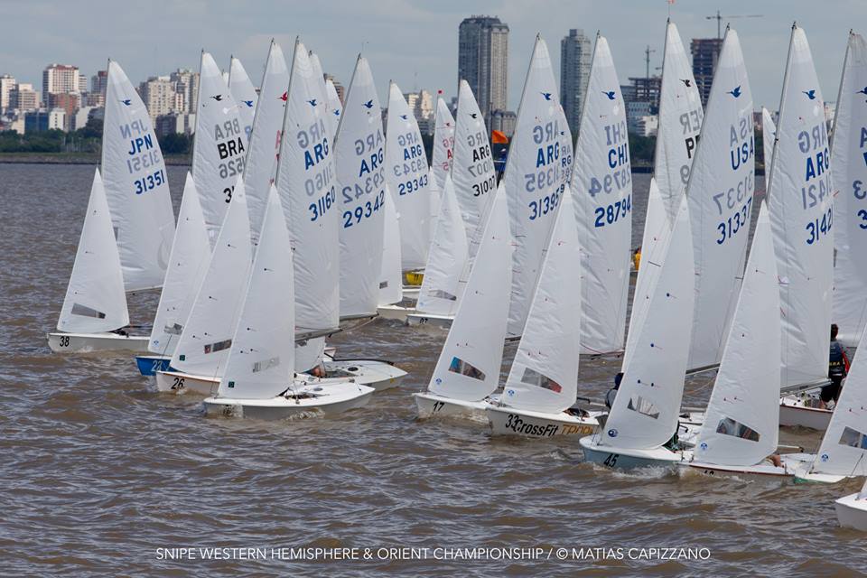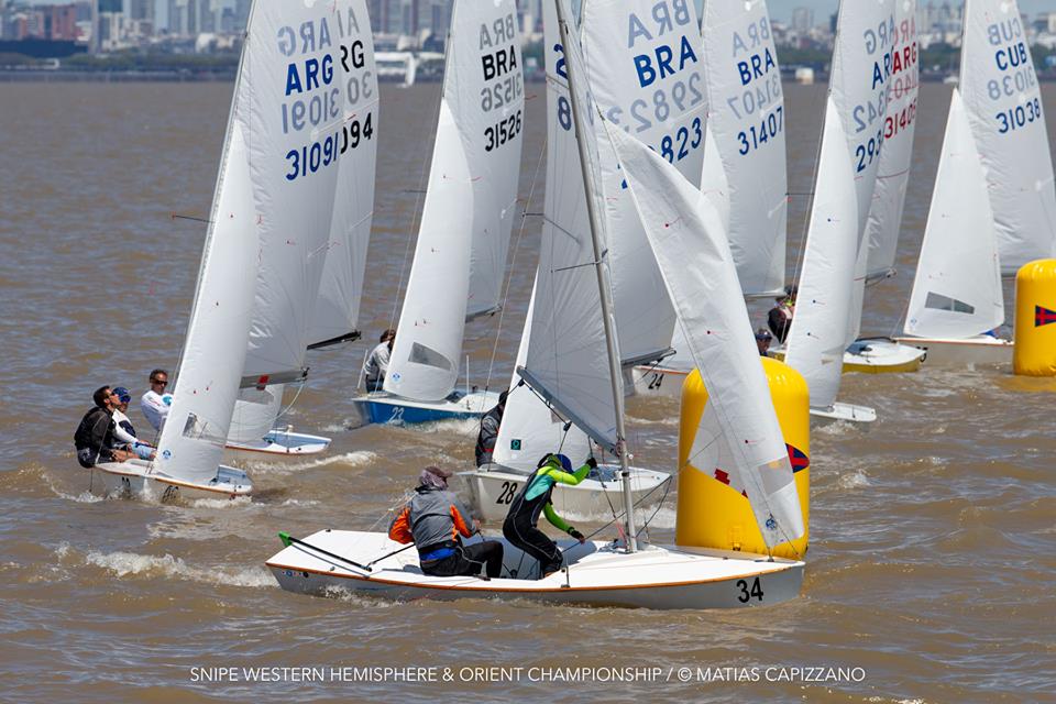 It’s been a very even yet exciting Western Hemisphere & Orient Snipe Class Championship 2018. This morning in Buenos Aires, before the two last races were sailed there were five teams that could mathematically win the event. An easterly breeze of about 7 knots was blowing on the race course at the time of the start of the first race, and the 42 boats were eager to get on with the competition but probably the most eager of all were Ernesto Rodriguez and Kathleen Tocke (USA) that wanted to get at least one more race done in order to discard both the DNCs of the first day when they couldn’t race for some health issues. The race winners were Augusto Amato and Constanza Alvarez (ARG) but right behind them there were Rodriguez with Tocke.
