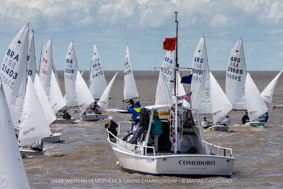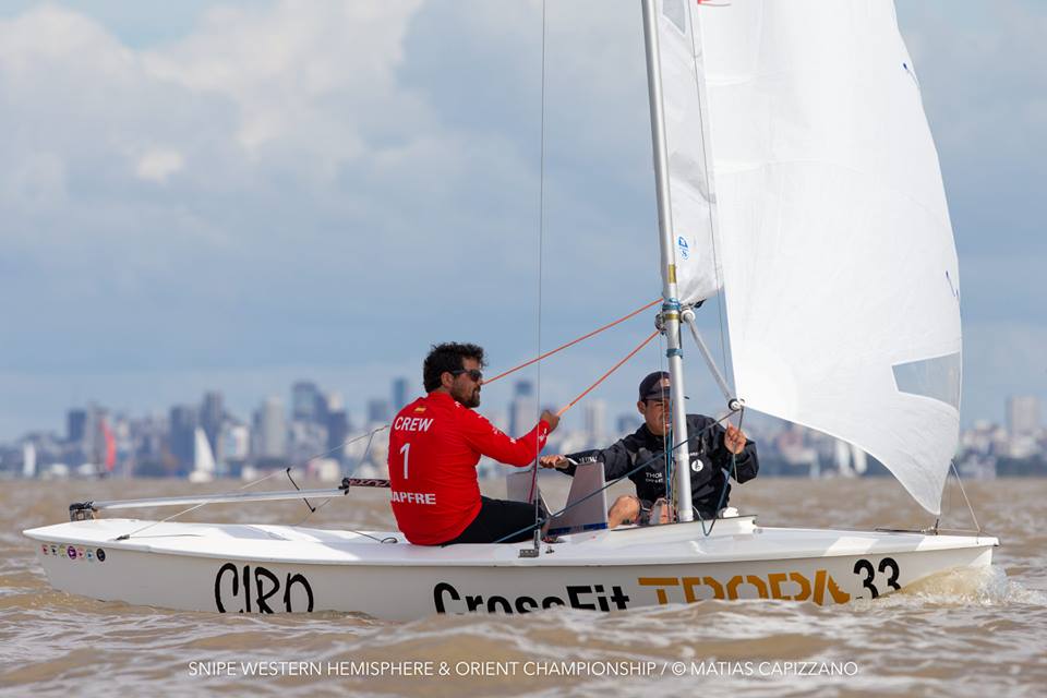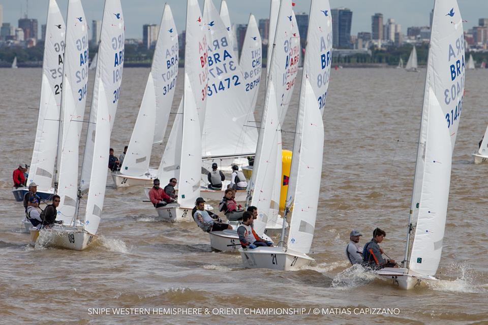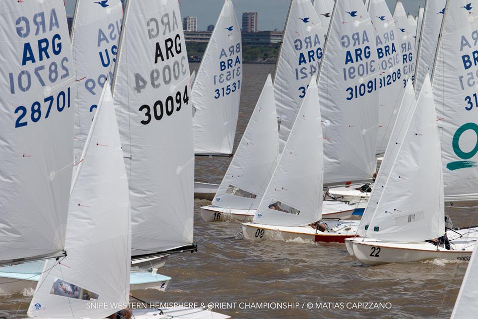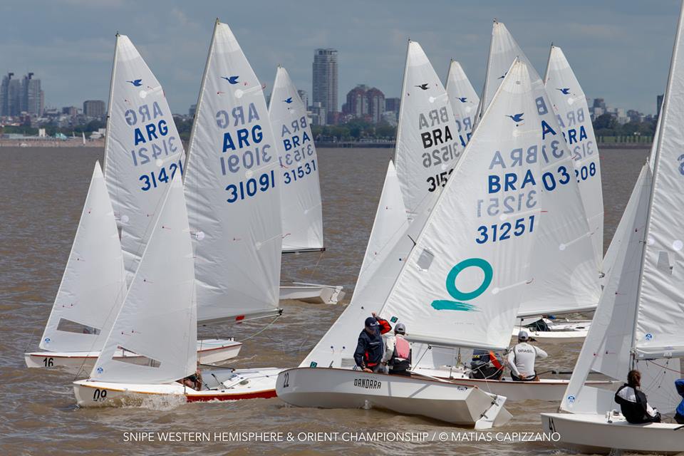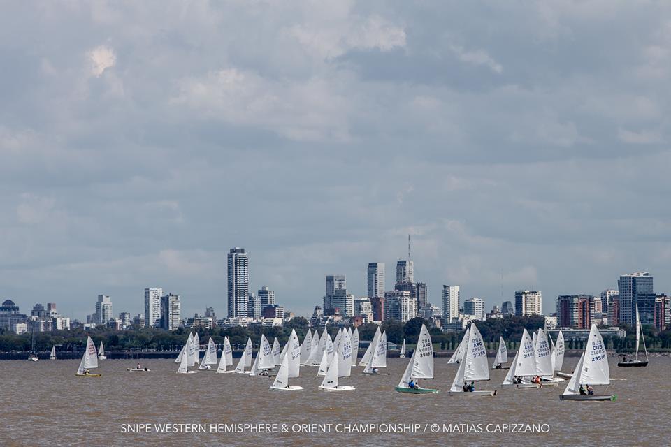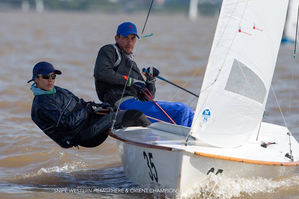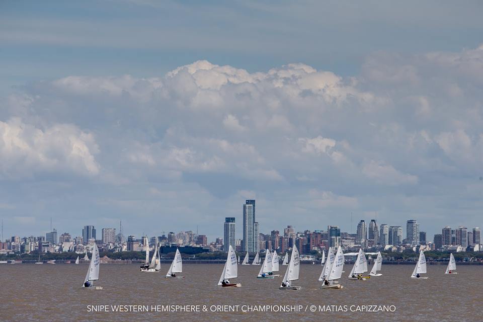 It’s been a very even yet exciting Western Hemisphere & Orient Snipe Class Championship 2018. This morning in Buenos Aires, before the two last races were sailed there were five teams that could mathematically win the event. An easterly breeze of about 7 knots was blowing on the race course at the time of the start of the first race, and the 42 boats were eager to get on with the competition but probably the most eager of all were Ernesto Rodriguez and Kathleen Tocke (USA) that wanted to get at least one more race done in order to discard both the DNCs of the first day when they couldn’t race for some health issues. The race winners were Augusto Amato and Constanza Alvarez (ARG) but right behind them there were Rodriguez with Tocke.