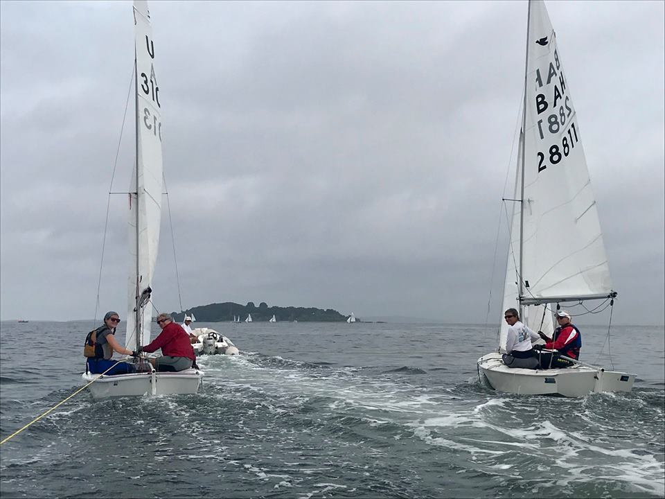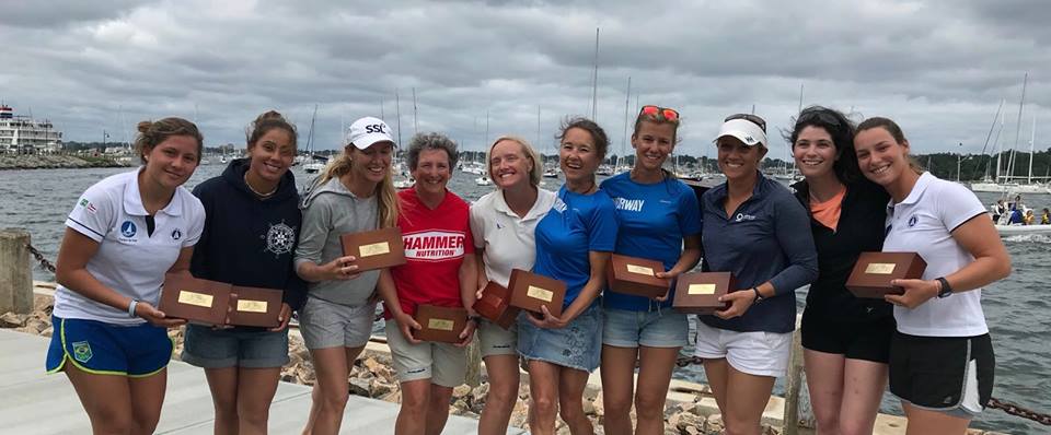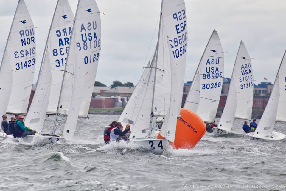 Newport, RI, August 19, 2018 (Photo courtesy of Matthew Cohen) Down to the Wire The title for the championship came down to the wire. Only one race was planned for the final day and there was only a three point spread between the Norwegian team, Americans Cronin and Couranz, and the Portuguese-American team of Pires de Lima and Tocke. The Norwegians lead going into today, but with more breeze forecasted, bets were on the American and Portuguese boats who were gunning for one more race in breeze. ...